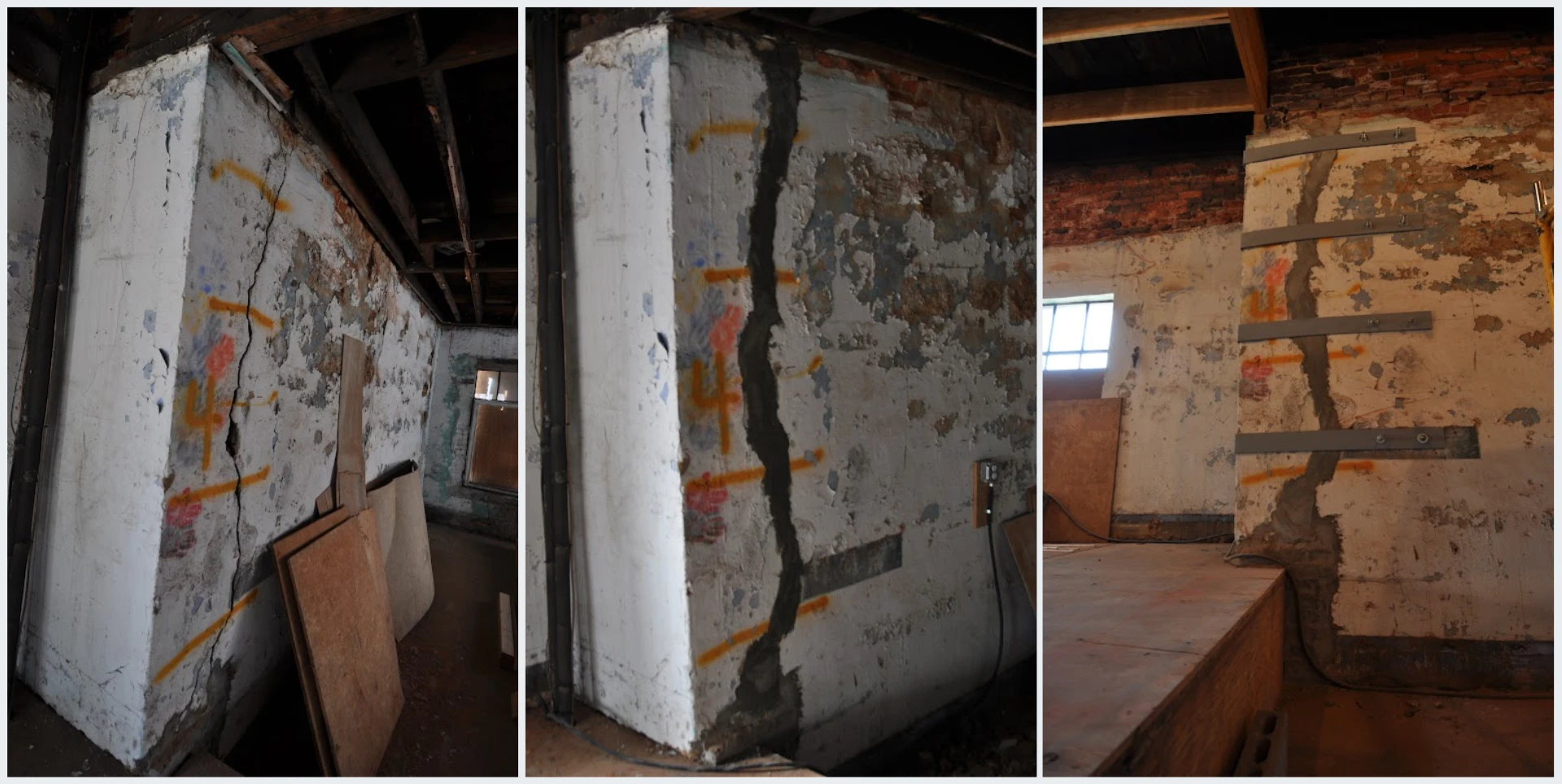 What Sean found when he stepped inside was a building in serious structural distress. Its neighbor immediately to the north had been demolished — likely after a fire, he recalled — and the loss of that adjoining structure had caused 37 Biltmore to shift and twist in ways that had gone unaddressed for years.